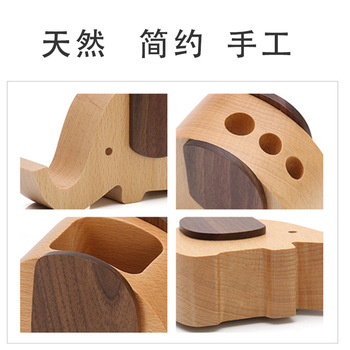 木质手机支架DIY 多功能木制笔插笔筒大象手机支架 实木手机底座